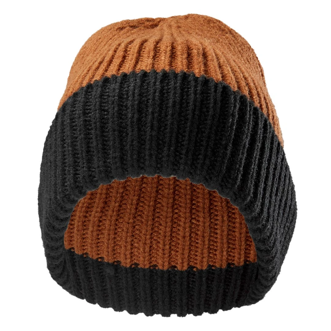 Ce modèle noir et marron est conçu pour être le bonnet que vous porterez toute la saison. Fabriqué avec un mélange pas trop chaud d’acrylique de haute qualité et de laine mérinos qui ne démange pas.