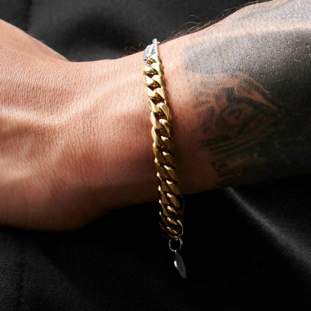 Lucleon Bracelet En Acier Couleur Argent Et Or Carlos Amager à Double Maille Gourmette