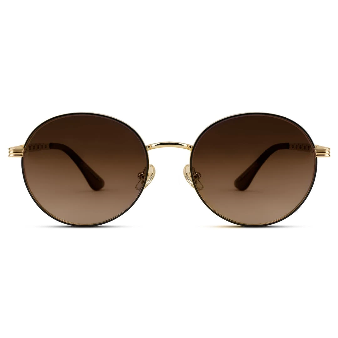 Ces montures dorées soutiennent des verres TAC bruns polarisés qui protégeront vos yeux des reflets du soleil. Cette monture durable est fabriquée en acier inoxydable et en alliage de nickel. Des plaquettes de nez en gel de silice viennent compléter cet ensemble – vos lunettes de soleil resteront confortablement en place sur votre visage.