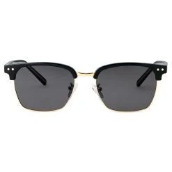 Fawler Lunettes De Soleil Browline à Verres Polarisés Et Monture De Couleur Noir Et Or