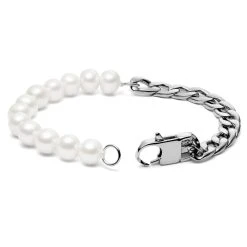 Lucleon Chaîne Gourmette Argentée Et Bracelet De Perles Chad Amager