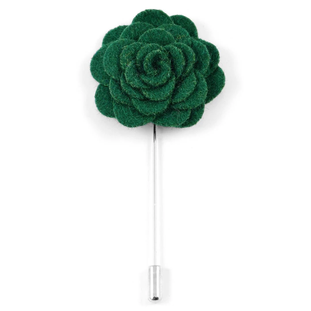 Cette magnifique broche est ornée d’une rose en laine vert foncé.