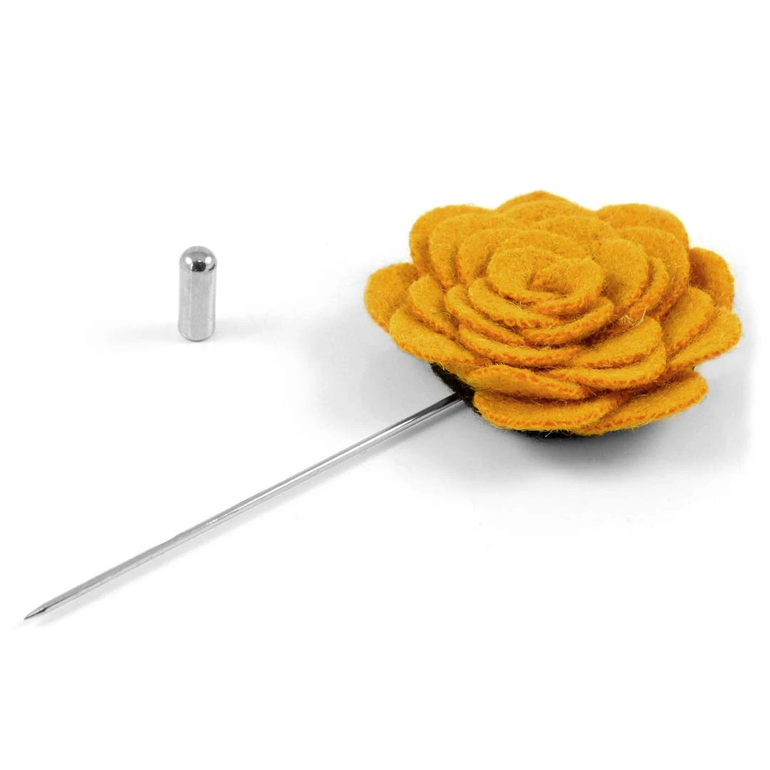 Cette magnifique broche est ornée d’une rose en laine orange.