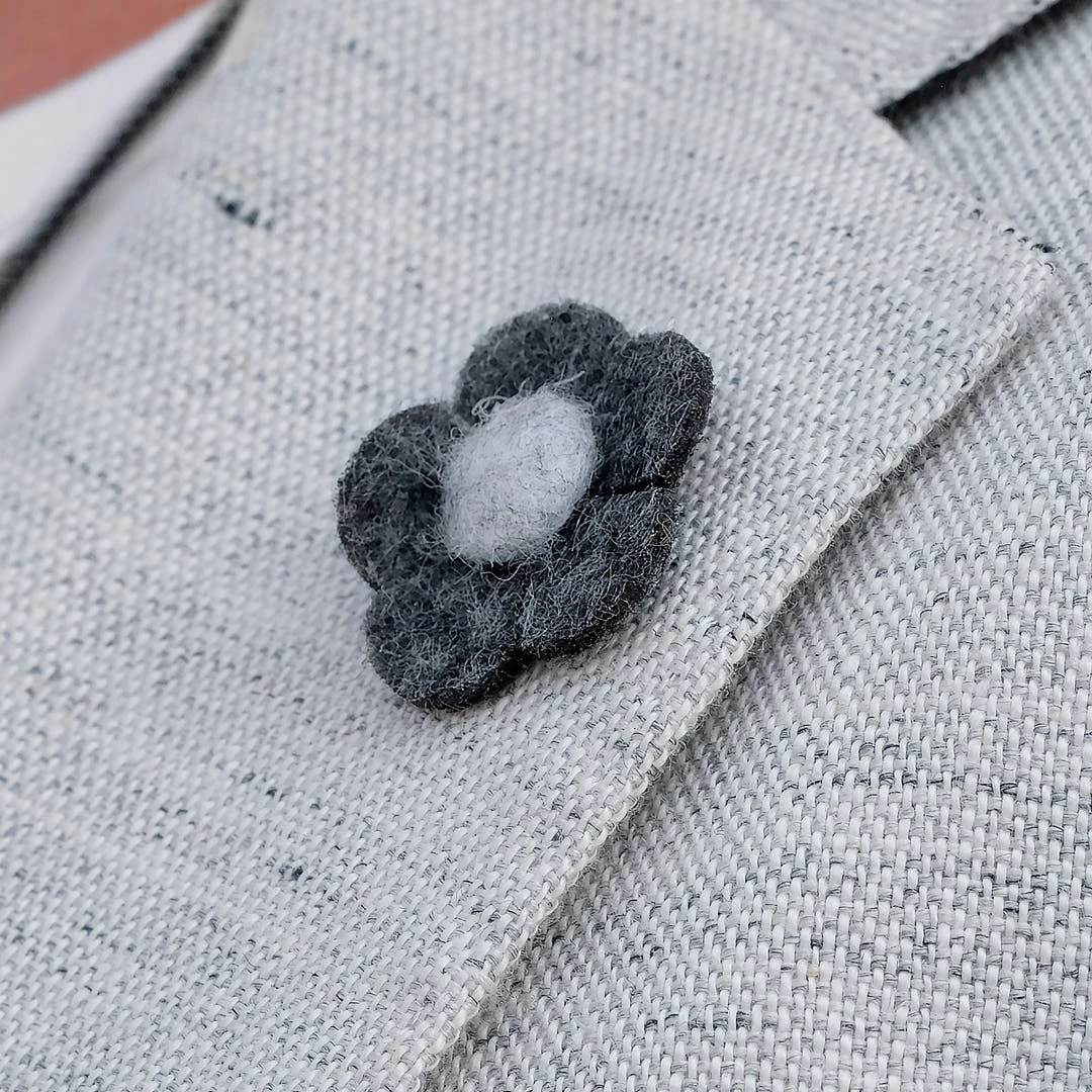 Quelle que soit la saison, cette marguerite en feutre aura fière allure au revers de votre costume. Une épinglette aux tonalités de gris qui lui procureront élégance et tonicité, quel que soit le soit l’utilisation que vous en ferez. Un accessoire polyvalent que vous pourrez porter avec des tenues aussi bien formelles que décontractées.