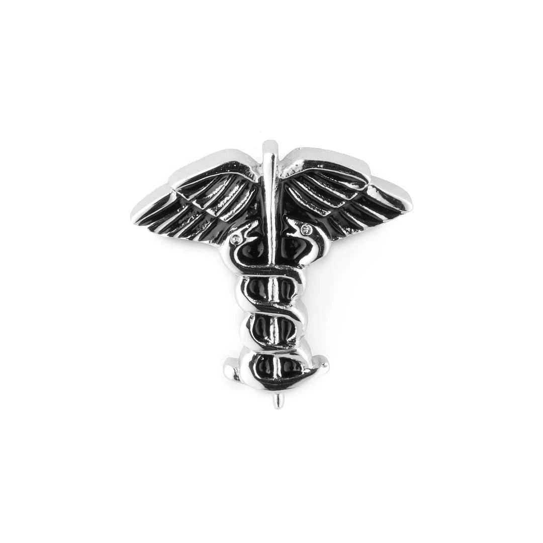 Ce magnifique accessoire tirant son inspiration de la Grèce antique ajoutera style et élégance masculine à la plupart vos tenues de par son bâton ailé enlacé par deux serpents ! Un accessoire polyvalent, qui pourra être utilisé aussi bien pour décorer une veste en cuir qu’une tenue décontractée.